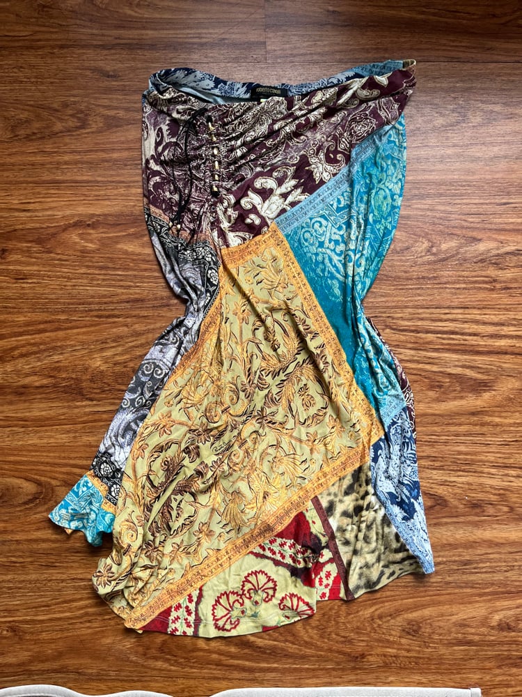 This skirt features a variation of mixed prints throughout the piece. It also has a super flowy material, midi skirt great for all of the seasons. Item is in great vintage condition. Final sale no returns.